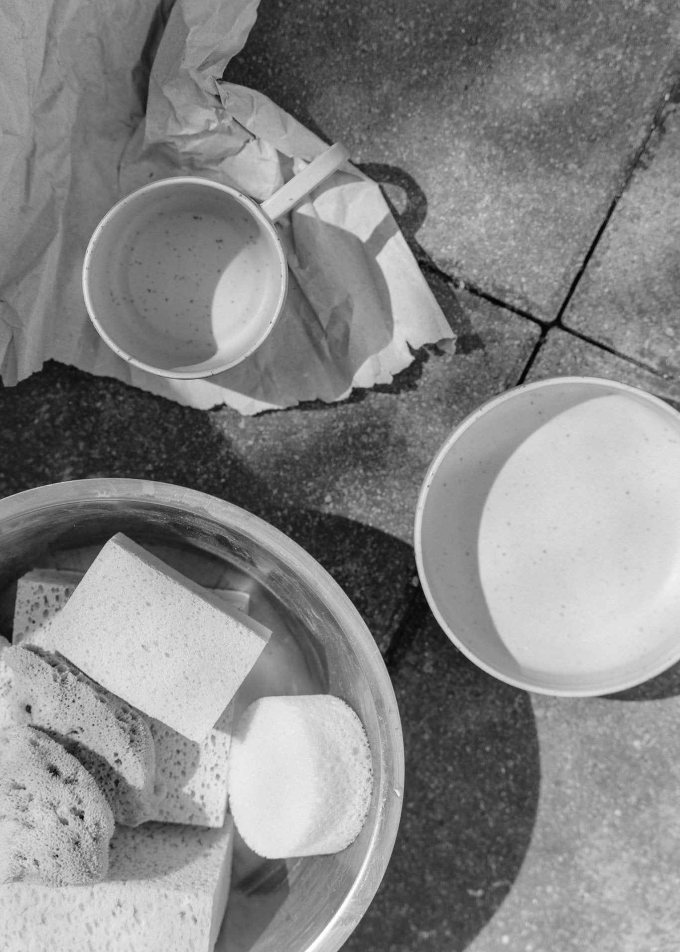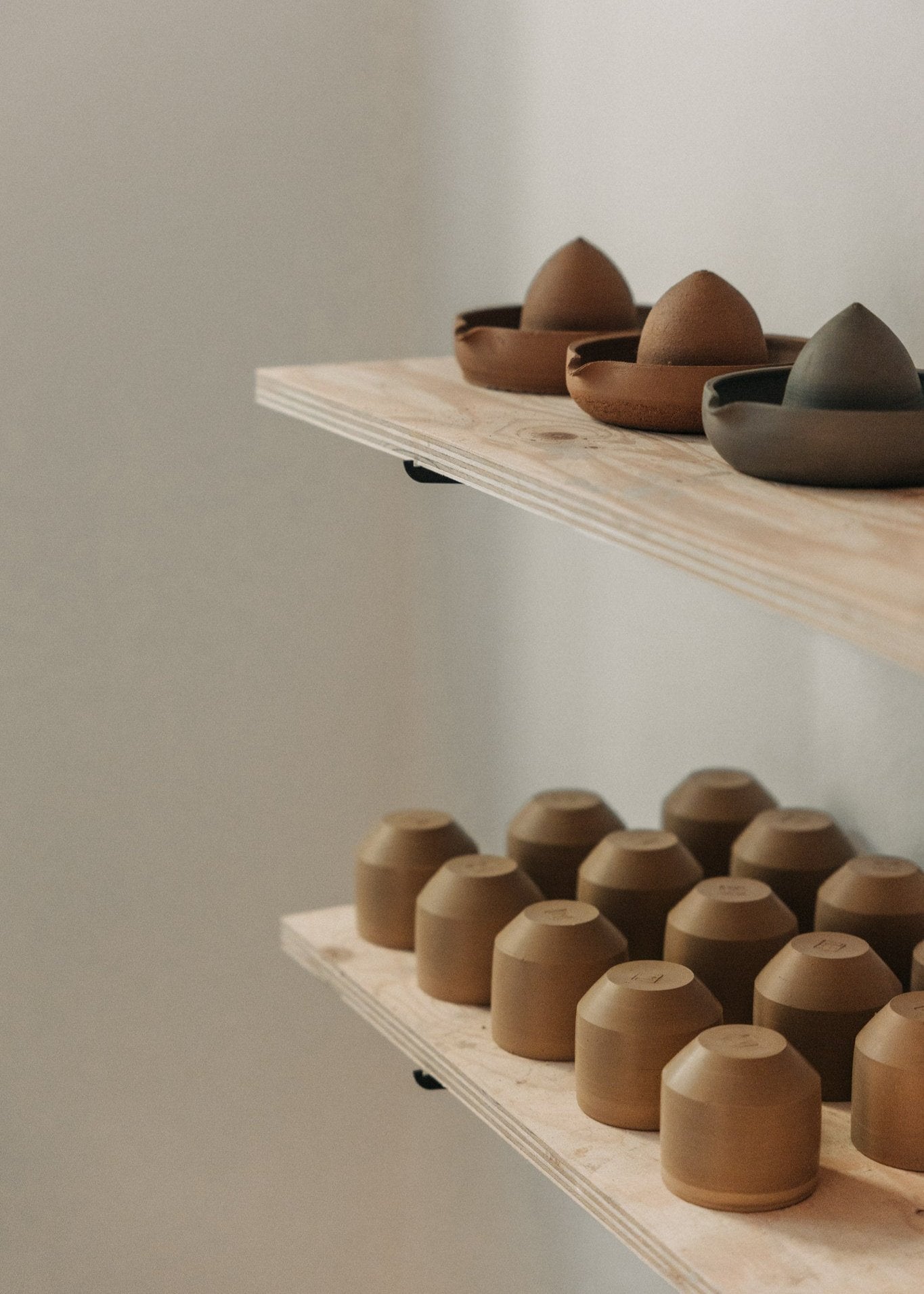 Nun erhält jedes Objekt seine Glasur. Die Stücke werden in die gewünschte Glasur getaucht und anschließend werden unglasierte Flächen sowie der Boden sorgfältig abgewischt. Dann, wenn der Scherben wieder vollständig getrocknet ist, folgt der Glasurbrand bei etwa 1200 bis 1260 Grad, bei dem die Glasur eine dauerhafte Oberfläche bildet und die Keramik ihre finale Stabilität erhält. Nach dem Abkühlen des Ofens, werden die Produkte herausgenommen, abschließend geschliffen und kontrolliert, sodass nur perfekt gearbeitete Stücke in den Verkauf gelangen.