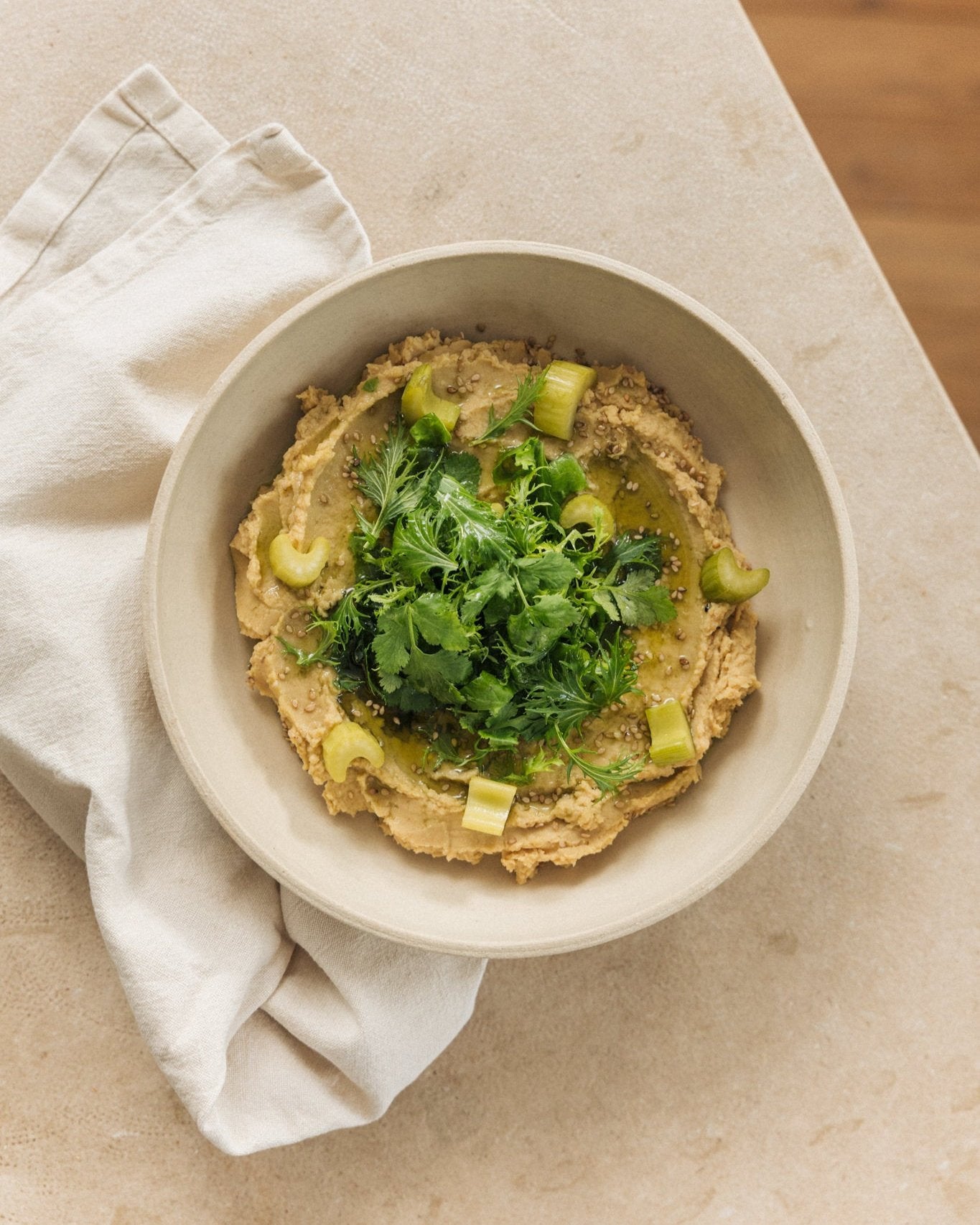 Diese Bowl wird aus einem schamotteritem hell-beigen Steinzeugton an der Drehscheibe handgefertigt. Innen wird sie mit einer transparent glänzenden Glasur glasiert, während der Außenseite unglasiert bleibt.