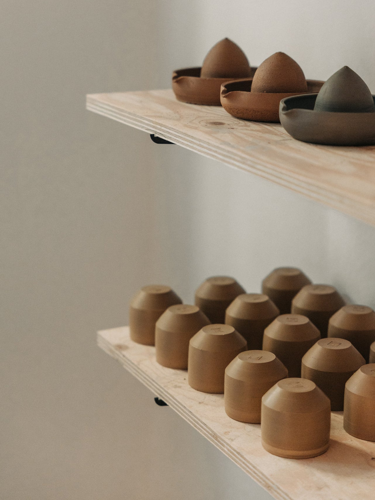 Alle Produkte werden in meinem Hamburger Atelier in präziser Handarbeit gefertigt. Kleine Abweichungen in Größe, Farbe oder Form sind charakteristisch für handgemachte Stücke und unterstreichen ihre Einzigartigkeit. Die Keramik ist lebensmittelecht und spülmaschinenfest. Unglasierte Oberflächen haben eine bewusst raue Haptik. Es ist empfehlenswert, unglasierte Bereiche nicht über längere Zeit mit fettigen Lebensmitteln oder stark färbenden Flüssigkeiten in Kontakt zu bringen.